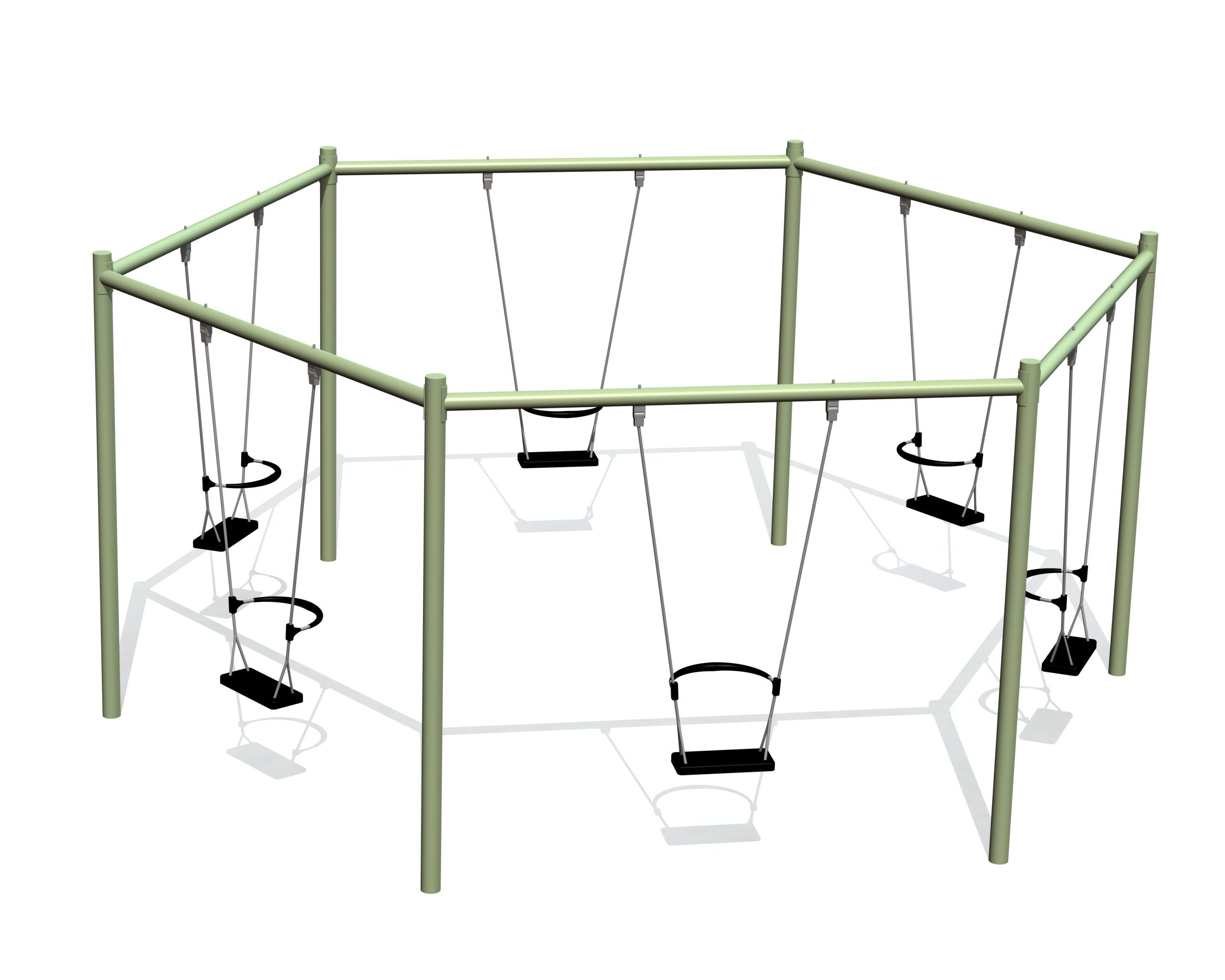 Denne robuste 6-sæders cirkelgyngeramme STRAW kan bruges samtidigt af seks børn til at svinge udad fra midten. For sikker og korrekt brug inkluderer gyngestativet specialdesignede sæder med ryglæn. Sædehøjde fra jorden: 53 cm.